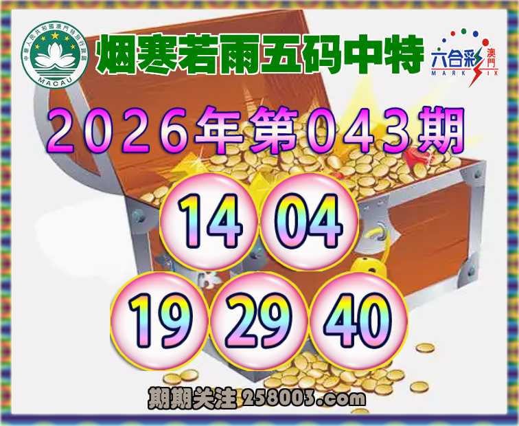 043期: 🚡《烟寒若雨》 🚡五码中特🚡【14.04.19.29.40.09】开:13